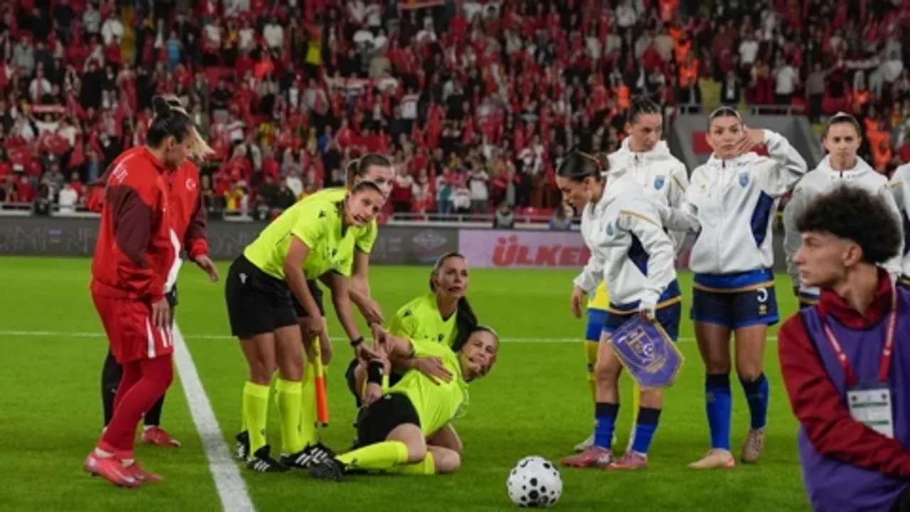 UEFA Uluslar B Ligi Play-Out rövanş maçında Gürsel Aksel Stadı’nda Kosova’yı ağırlayan A Milli Kadın Futbol Takımı’nın karşılaşmasından önce Polonyalı hakem Michalina Diakow seremoni sırasında fenalaştı.
