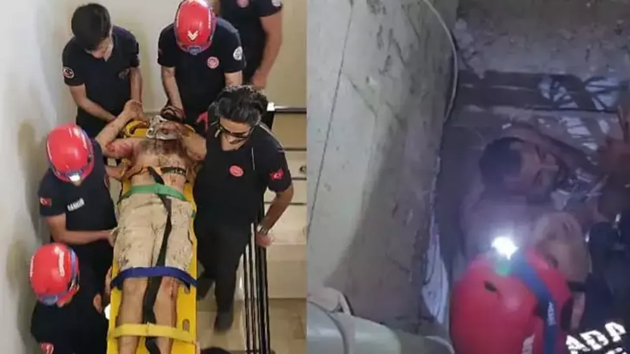Yaralı işçi, itfaiye ekiplerinin halatlı müdahalesiyle kurtarıldı.