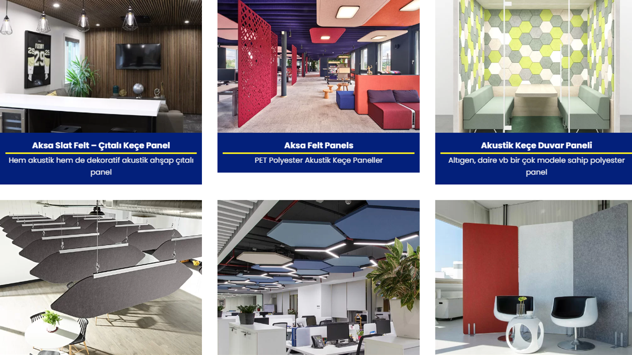 Asma tavan sistemleri, yalnızca ses yalıtımıyla kalmayıp elektrik, havalandırma ve aydınlatma gibi teknik donanımları da kolayca entegre etme avantajı sunar. Aksa Akustik, tavan sistemlerinde farklı malzeme ve yüzey seçenekleriyle her mimari tarza uyum sağlayacak ürünler sunar. Ofis binaları, toplantı salonları, oteller, kamu binaları, çağrı merkezleri ve eğitim kurumları gibi çok sayıda yapıda bu sistemler hem görsel bütünlük hem de akustik performans açısından tercih edilmektedir.