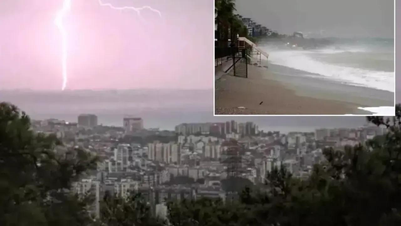 Kent merkezinin üzerinde oluşan koyu bulutlar, akşam saatlerine doğru etkisini artıran fırtınayla birleşince Antalya'nın silüeti adeta görünmez hâle geldi. Özellikle Konyaaltı bölgesinde sahile vuran kuvvetli dalgalar, rüzgarla birlikte etkileyici görüntüler oluşturdu.