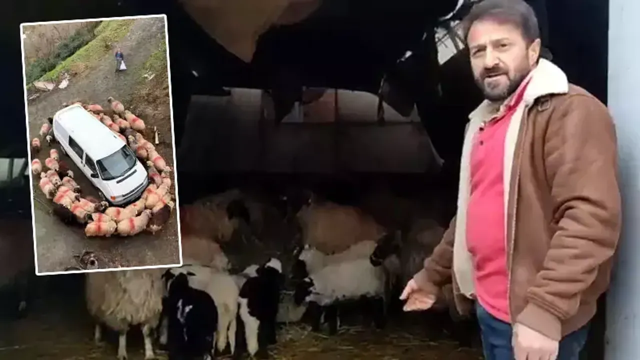 Sabah saatlerinde ahırdan çıkarılan koyunların otlama alanına yönelmesi beklenirken, sürü minibüsün çevresinde aynı hız ve düzenle daire oluşturarak döndü. Dakikalarca süren ilginç görüntüler cep telefonu kamerasına yansıdı.