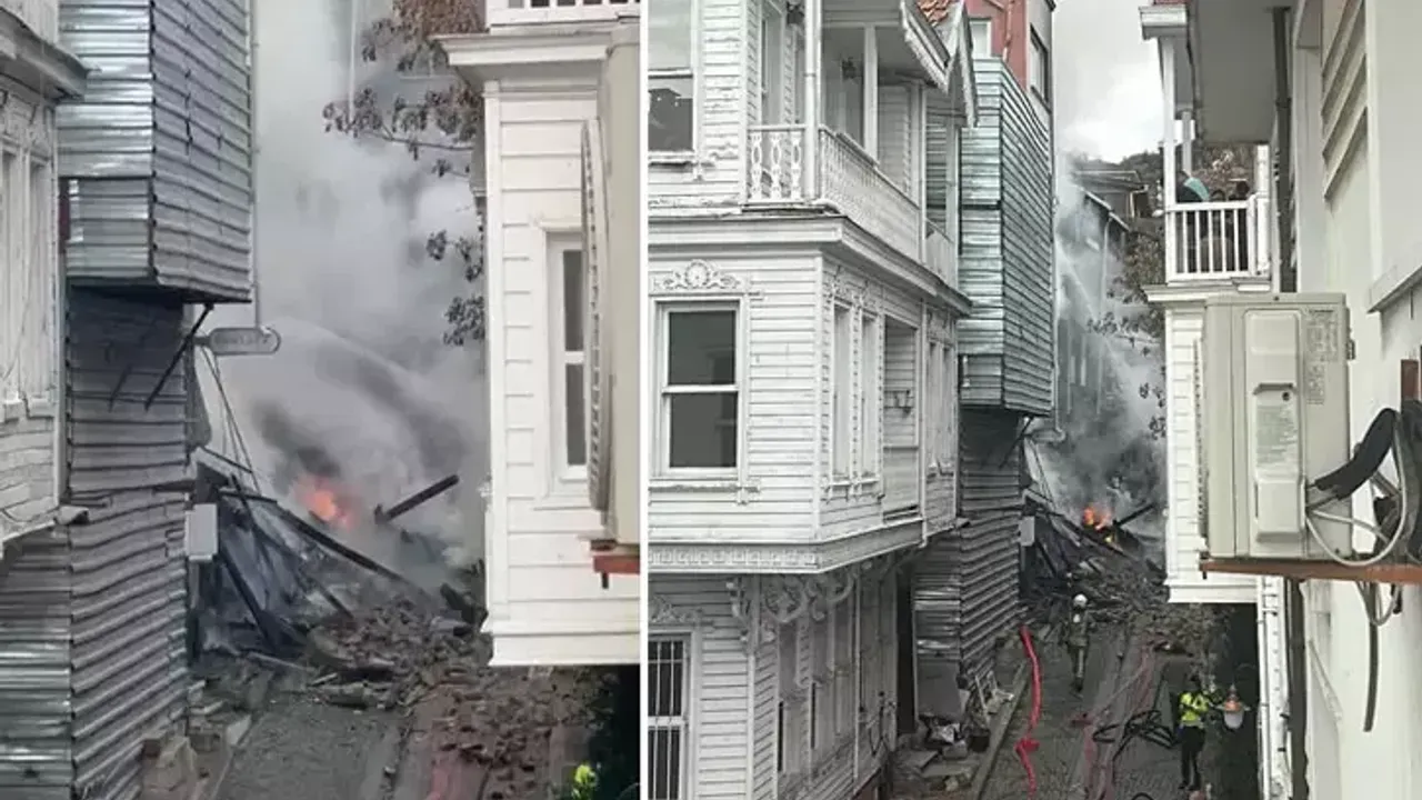 Alevlerin etkisiyle binada kısmi çökmeler yaşanırken, ekiplerin yangını kontrol altına almak için çalışmaları sürüyor.