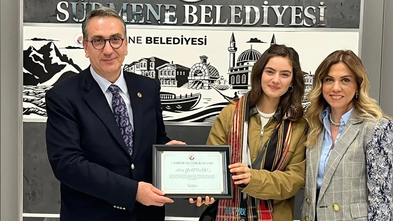 “Şehrimizin ve ilçemizin tanıtımına katkı sağlayan ve artık Sürmene’mizin de evladı olan Ava Yaman’a Fahri Hemşehrilik Beratı ve plaket takdim ettik. Nazik ziyaretleri için kendilerine teşekkür ediyoruz.”