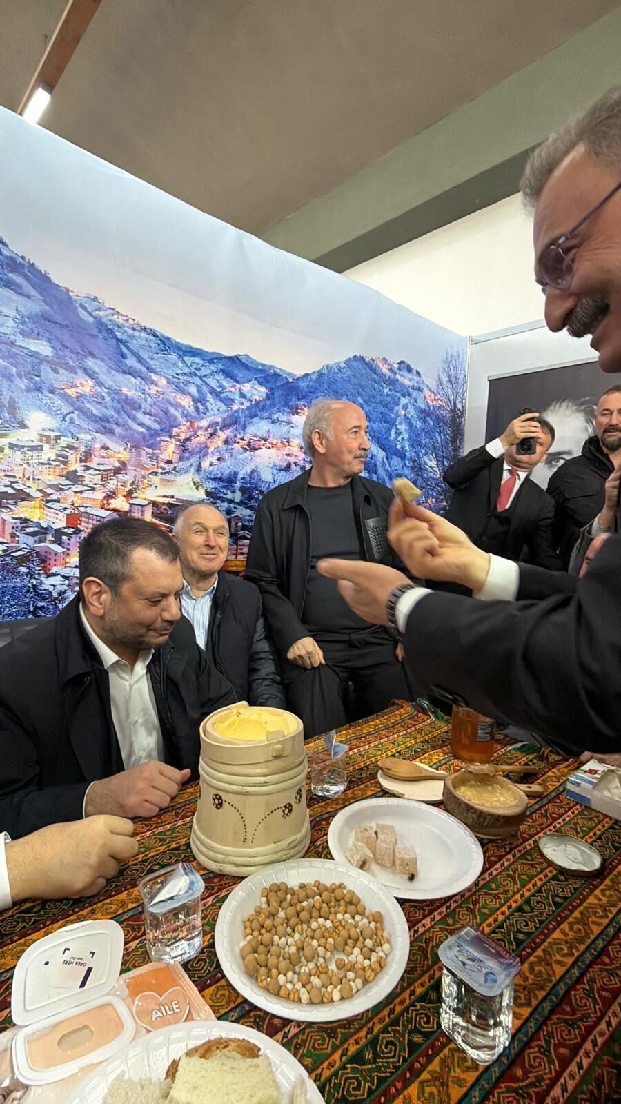 Trabzonspor Başkanı Ertuğrul Doğan, Asbaşkan Zeyyat Kafkas ve beraberindekiler, Ankara’da Trabzon Tanıtım Günleri’ne katılım sağladı. Başkan Ertuğrul Doğan’a kuymak, tereyağ ve bal ikram edilirken Başkan Doğan kuymağın başına geçerek yapım sürecinde de yer aldı.