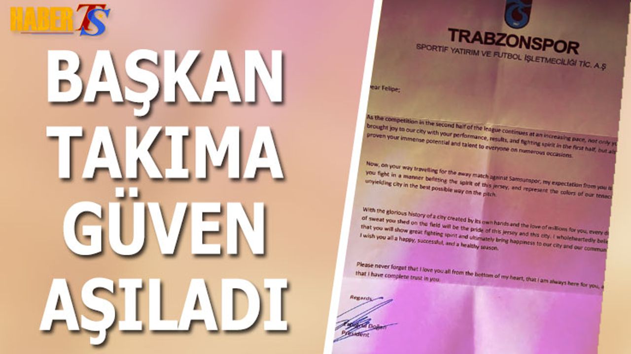Trabzonspor Başkanı Ertuğrul Doğan, transfer döneminin son gününde bordo mavi formayı giyen futbolculara moral ve motivasyon amacıyla bir mektup gönderdi. Tecrübeli yönetici, ligde ikinci yarıyla birlikte artan rekabete dikkat çekerken, takımın ilk yarıda ortaya koyduğu performansın camiada büyük bir mutluluk yarattığını ifade etti.