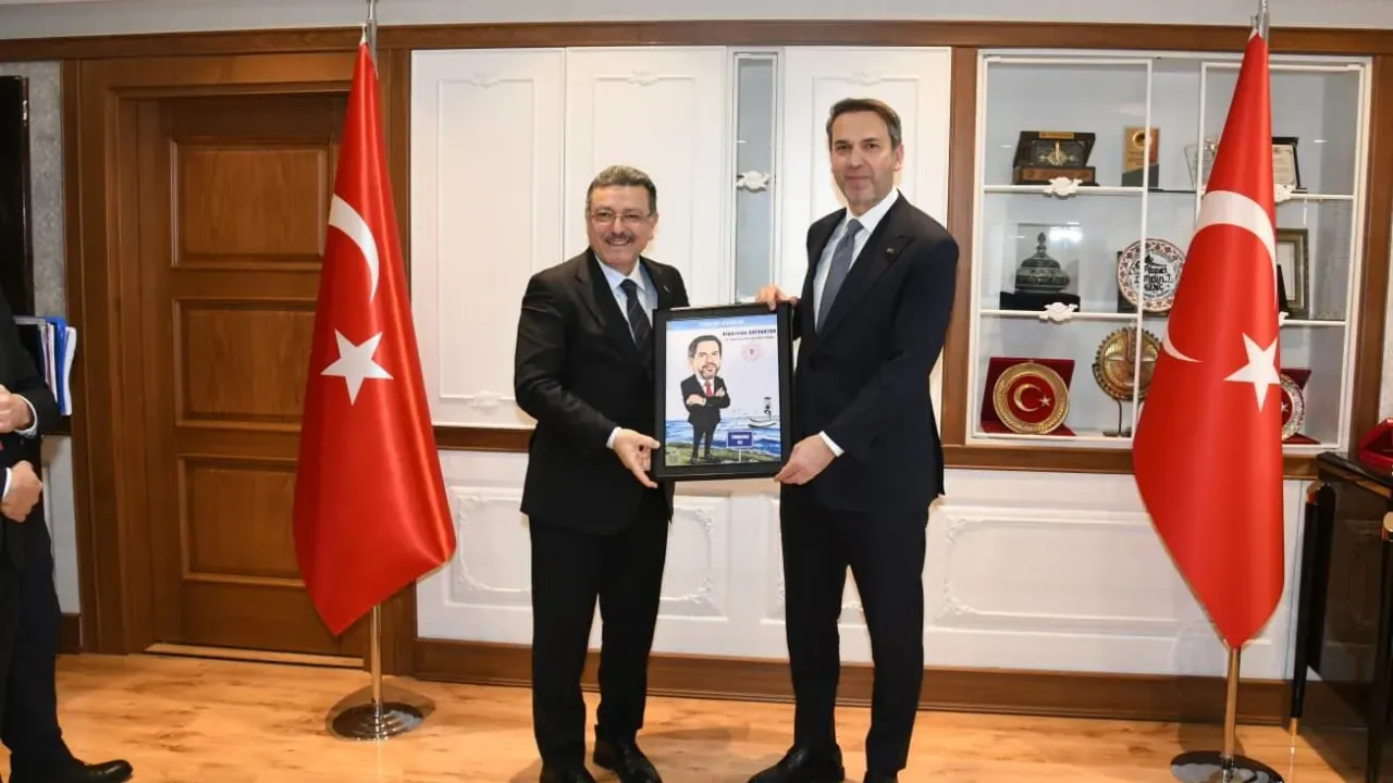 Büyükşehir Belediyesi’ne gerçekleştirilen ziyaret sırasında yaşanan sürpriz anlar, yüzleri güldürdü. Alparslan Bayraktar, ziyaret kapsamında kendisine takdim edilen özel bir karikatürle karşılaşınca büyük bir şaşkınlık yaşadı. Karikatür, sanatçı Tamer Küçük tarafından hazırlanırken, eseri Bakan Alparslan’a Ahmet Metin Genç takdim etti.