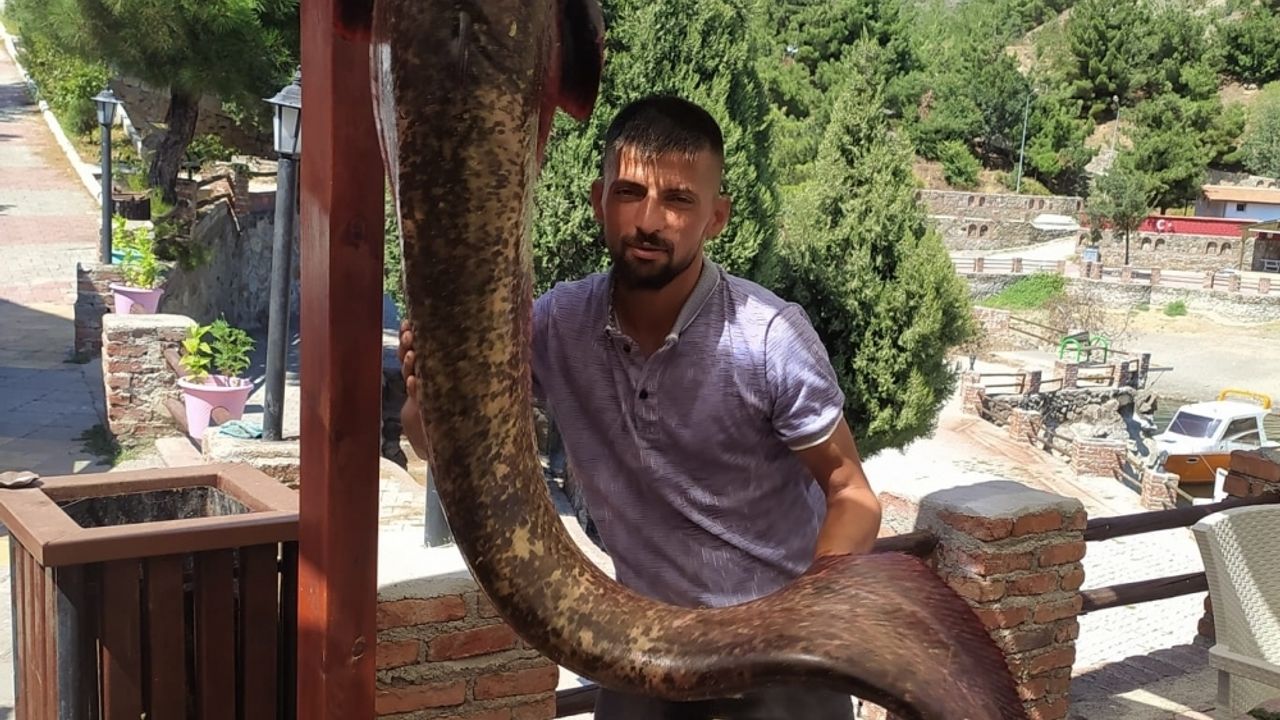 ÇORUM (AA) - Çorum'daki Obruk Baraj Gölü'ne açılan iki arkadaş, 50 kiloluk yayın balığı yakaladı.