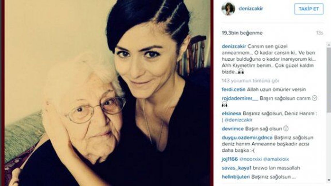 Eşkiya Dünyaya Hükümdar Olmaz dizisinde Meryem Çakırbeyli rolü ile beğeni toplayan Deniz Çakır dün anneannesini kaybetti. Çakır haberi instagram hesabında paylaştı. Anneannesi ile bir fotoğrafını paylaşan Çakır fotoğrafta; "Cansın sen güzel anneannem... O kadar cansın ki.. Ve ben huzur bulduğuna o kadar inanıyorum ki... Ahh Kıymetlim benim.. Çok güzel kaldın bizde." ifadelerini kullandı.