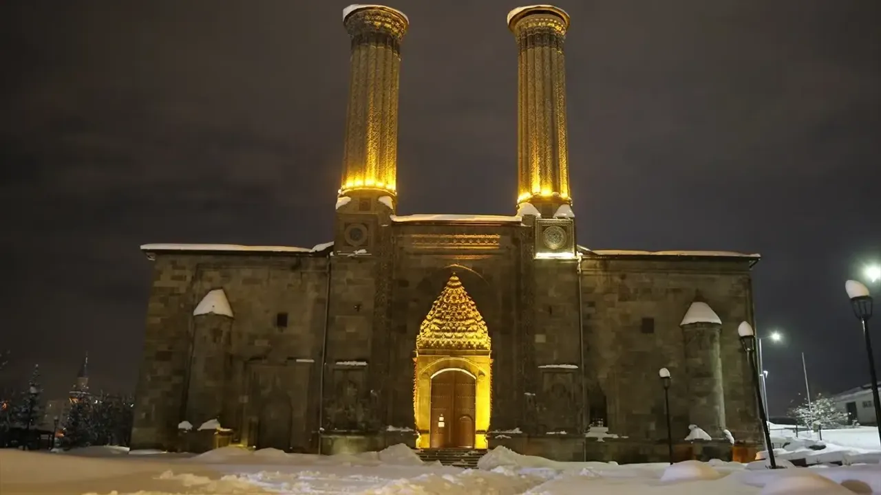 Yoğun yağışın ardından kent merkezindeki tarihi yapılar beyaz örtüyle kaplandı. Çifte Minareli Medrese, Erzurum Kalesi, Yakutiye Medresesi ve Tepsi Minareli Saat Kulesi karla birlikte farklı bir güzelliğe büründü.