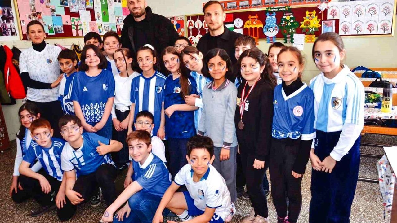 Daha önce destek videolarıyla takımlarına moral veren öğrencilerin çağrısına kayıtsız kalmayan futbolcular, şampiyonluk sonrası sözlerini tutarak okula geldi. Bu buluşma, çocuklar için unutulmaz anlara sahne oldu.