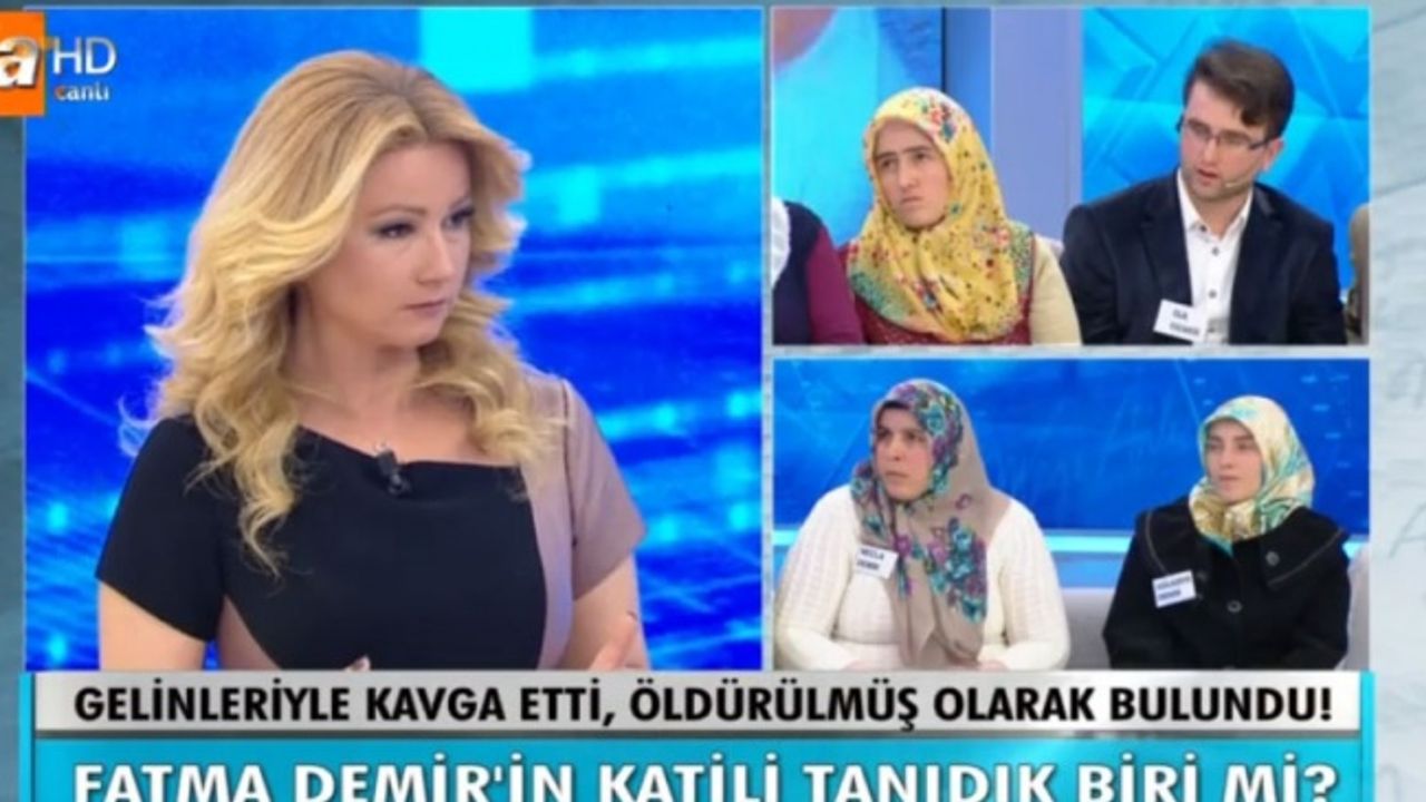 ATV'nin en çok izlenen programı Müge Anlı 25 Nisan yeni bölüm 1829. son bölüm ATV canlı yayın Fatma Demir'in katili kim çıktı? Fatma Demir cinayetinde kör düğüm çözülücek mi? Yılan hikayesine dönen Fatma Demir cinayetinde görgü tanıdığı Hidayet ve babası hakkında çarpıcı açıklamalarda bulundu. Hidayet beyin eşi Şöhret Akyol ilk kez canlı yayına bağlanarak konuştu. Fatma Demir'in katili kim Hidayet ile Nejla arasında ne var neyi gizliyorlar herkesin şüphelendiği isim olan Nejla neden korkuyor konuşmak istemiyor.