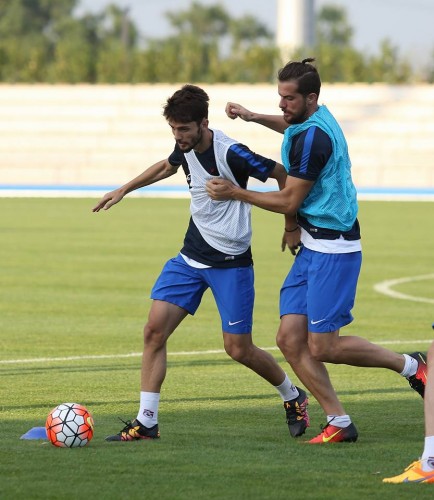 Akşam saatlerinde kamp yapılan otelin antrenman sahasında ısınmayla başlayan çalışmalar alanda dayanıklılık ve pas oyunuyla sonlandı.