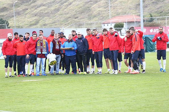 Antrenman öncesi tesislerimize gelen Trabzonsporlu taraftarlar futbolculara baklava ikram edip, takımımıza Kayserispor maçında başarı dilediler.