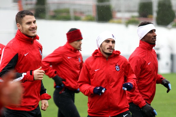 İdmanda Trabzonsporlu futbolcuların oldukça moralli oldukları gözlendi.