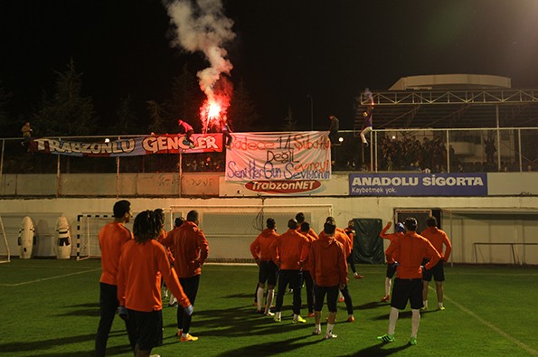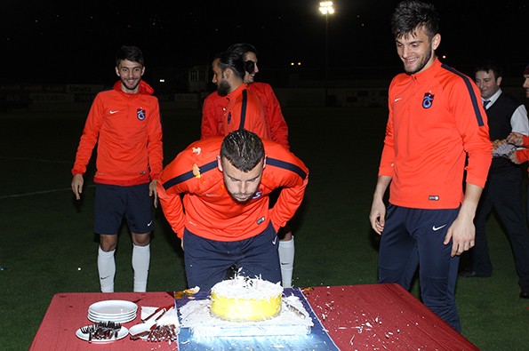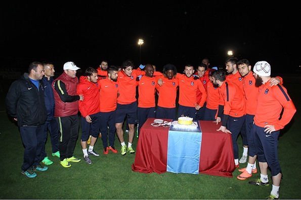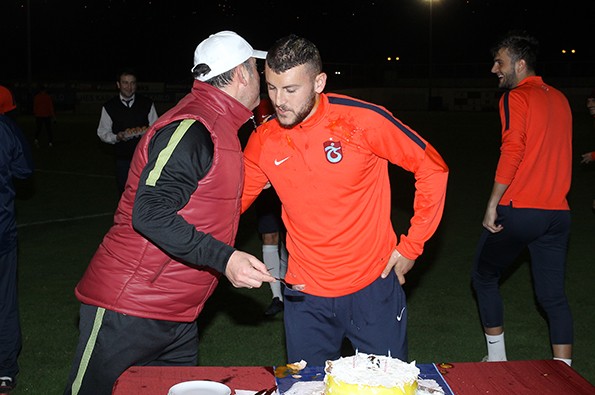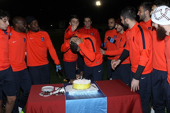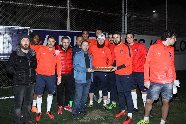 Trabzonspor'da sakatlardan dolayı can sıkılırken taraftarlar ise bugün 14 Şubat Sevgililer Günü olması dolayısıyla takıma mini bir sürpriz yaptı. Bordo-Mavili taraftarlar antrenman sonrasında tesislere gelerek takıma baklava ikram edip Kayserispor maçında başarılar diledi.