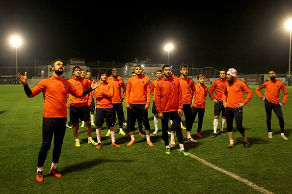 Bordo-Mavili oyuncu, takımdan ayrı olarak Musa Nizam ile birlikte düz koşu yaptı.