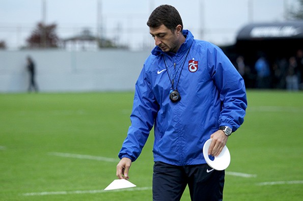 Bordo-mavili futbolcular, taktik ağırlıklı bir antrenman gerçekleştirirken, Gürcü teknik adam, sık sık oyunu durdurarak futbolculara uyarılarda bulundu.