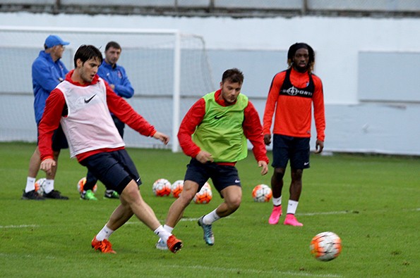Milli takımdan dönen Esteban'ın da katıldığı idmande morallerin yerine geldiği gözlenirken, Şota futb5olcuları sıklıkla uyararak motive etmeye çalışdı.