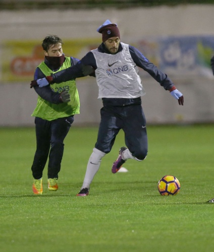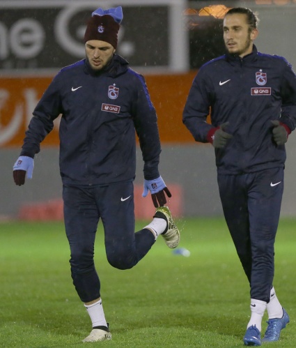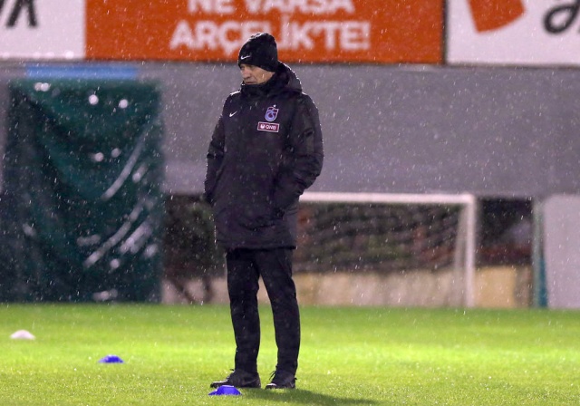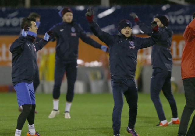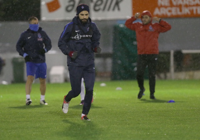 Yağmur altında gerçekleştirilen antrenmanın ilk 20 dakikalık bölümünde bordo-mavili oyuncular, ısınma hareketlerinin ardından taktik uygulamalar üzerinde durdu.