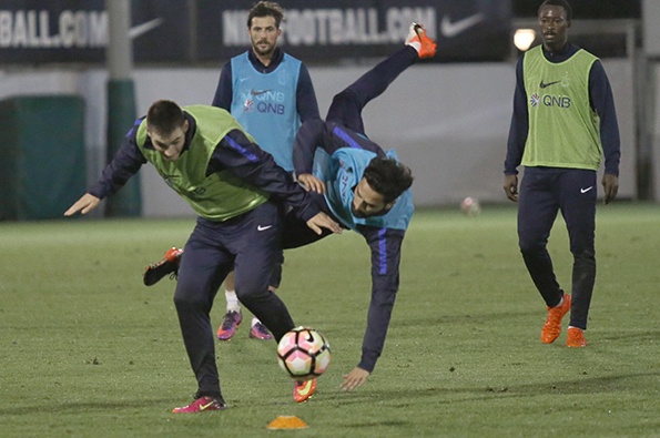 Futbolcuların, antrenmanda ısınma hareketlerinin ardından dar alanda oyun ve taktik çalışması yaptığı kaydedildi.