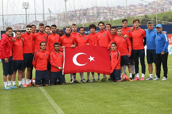 Bordo mavililer, antrenmandan önce 19 Mayıs Atatürk'ü Anma, Gençlik ve Spor Bayramı'nı kutlamak için ay yıldızlı bayrakla fotoğraf çektirdiler.