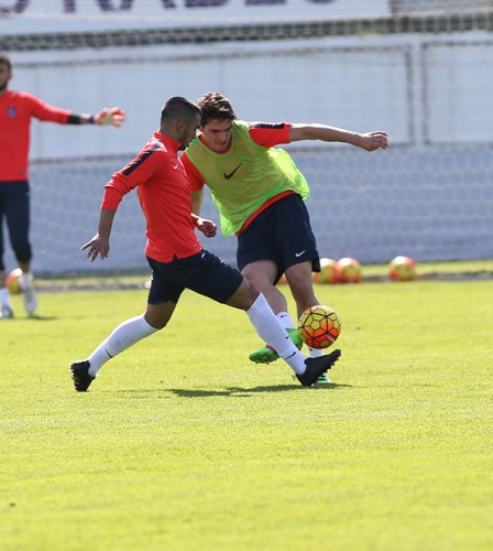 Teknik Direktör Hami Mandıralı yönetiminde yapılan antrenmana sakatlığı nedeniyle tedavi uygulanan Onur katılmazken, Mehmet, Güray ve Aytaç takımdan ayrı koşu yaptı.