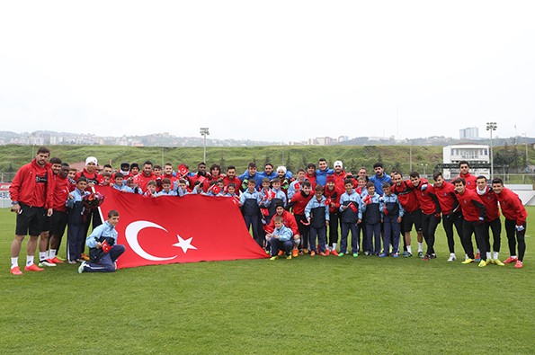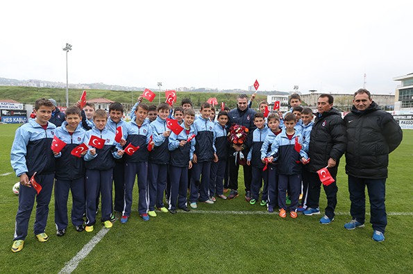 U12 Trabzonspor sporcuları antrenman öncesi A takımla bir araya gelerek, bu özel günü hep birlikte kutladı.