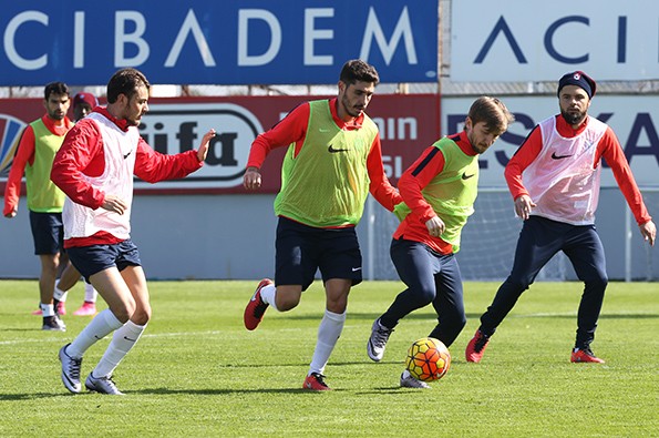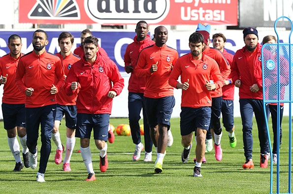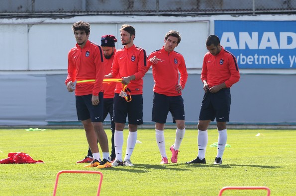 Yusuf Yazıcı ve Muhammet Beşir’in milli takım kampında bulunduğu antrenmanda Güray Vural kollukla çalışmalarını sürdürürken Okay yan sahada antrenmana devam etti.