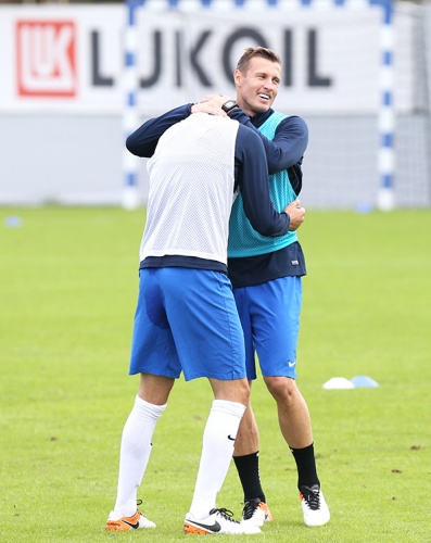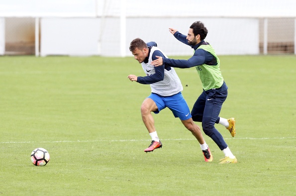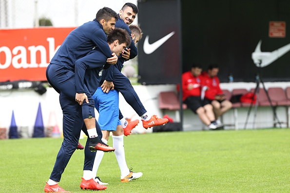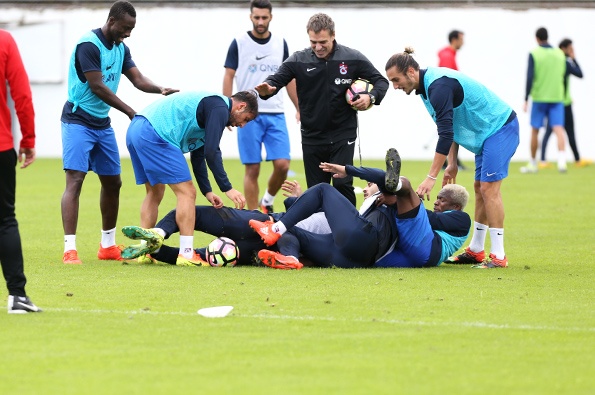 İdmanda teknik direktör Ersun Yanal ve oyuncuların neşeli oldukları gözlendi.