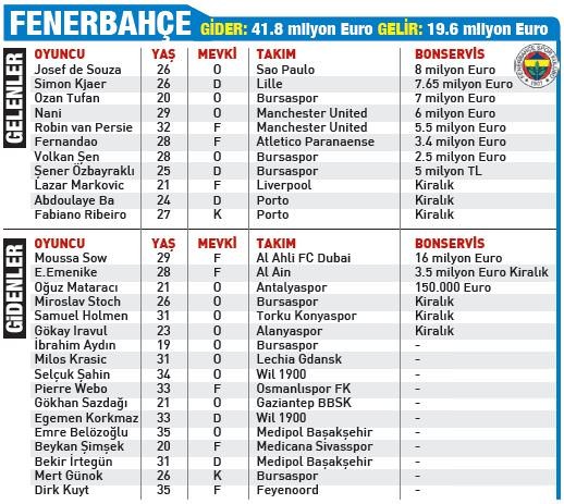 Avrupa çapında ses getiren transferlere sahne olan bu dönemde Van Persie başta olmak üzere Nani, Podolski, Gomez, Eto'o, Mbia gibi oyuncular Süper Lig'e adım attı.