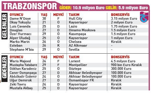 Samuel Eto'o ile açılan hesap Nani, Podolski, Van Persie, Mbia, Mario Gomez'le devam etti... Gelenler kadar Demba Ba, Sow, Melo gibi yıldızların gidişiyle de konuşuldu.
