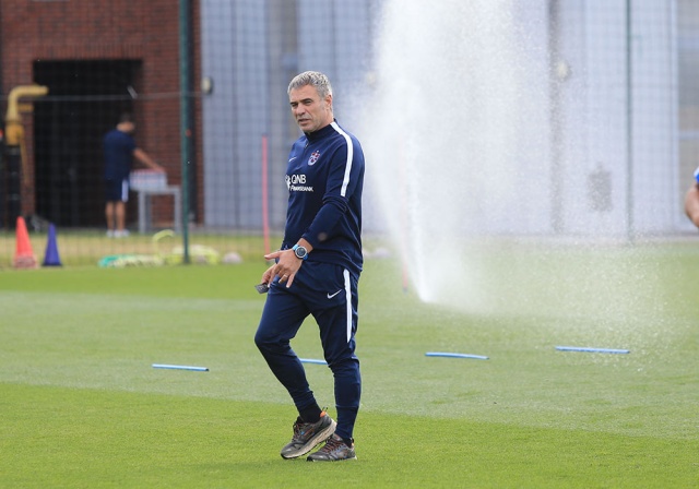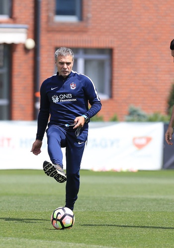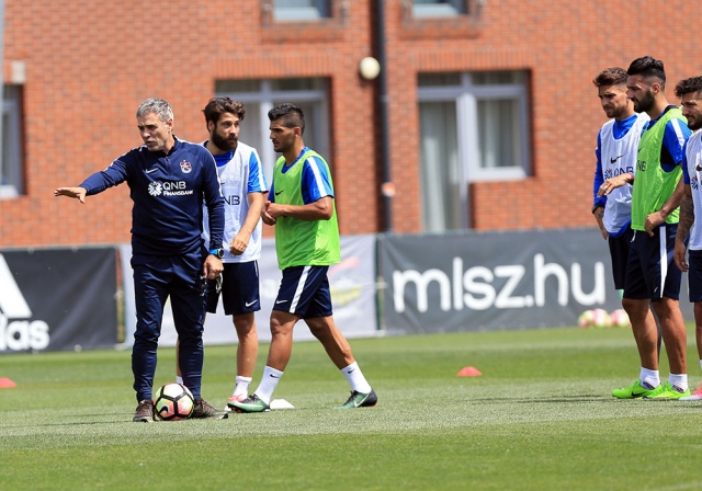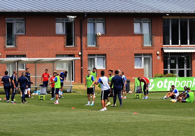 Bordo-mavililer, başkent Budapeşte'nin Telki kasabasında konaklanan otelin sahasında ilk 20 dakikası basın mensuplarına açık antrenman yaptı.