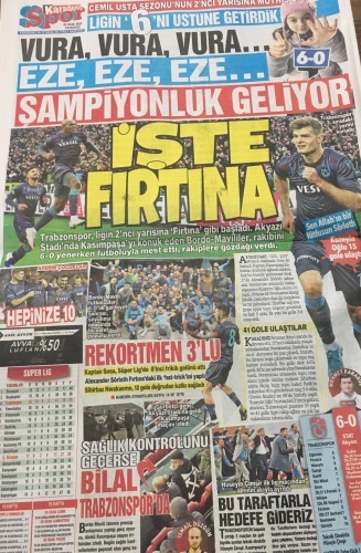 6-0'lık Kasımpaşa Galibiyeti Sonrası Yerel Gazete Manşetleri