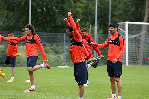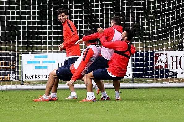Antrenmanda futbolcuların birbirleriyle kıyasaya yarışması dikkat çekti. Özellikle Mehmet Ekici, Salih Dursun’un yoğun markajı altında kaldı.