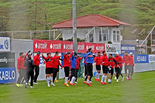 Teknik direktör Ersun Yanal yönetiminde Mehmet Ali Yılmaz Tesisleri'nde gerçekleştirilen antrenman, koşu ve ısınma hareketleriyle başladı.