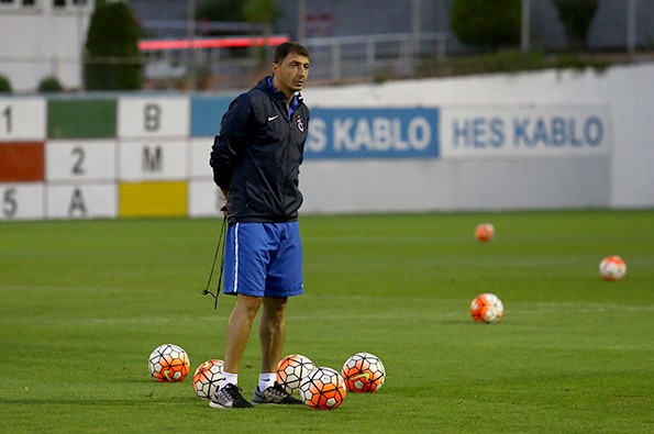 Isınma hareketlerinin ardından önce iki grup halinde mini kale maç yapan Trabzonspor'da, Şota Arveladze sık sık oyuncularını uyardı ve özellikle paslarda yüksek isabet oranı tutturmalarını istedi.