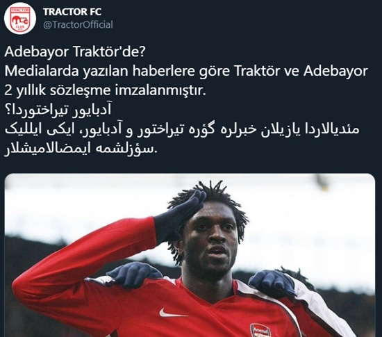 Basında yer alan haberlere göre; 35 yaşındaki Togolu, Mustafa Denizli'nin takımı Tractor Sazi (Traktör FC) ile 2 yıllık anlaşma imzaladı.