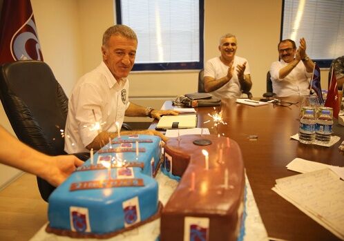 Mehmet Ali Yılmaz Tesisleri’nde yapılan Yönetim Kurulu toplantısından hemen önce Bordo Mavi renklerde ve ‘’61’’ yazılı pasta ile yaş günü kutlanan Başkan Ağaoğlu, kendisine yapılan bu sürpriz jest için herkese teşekkür etti.