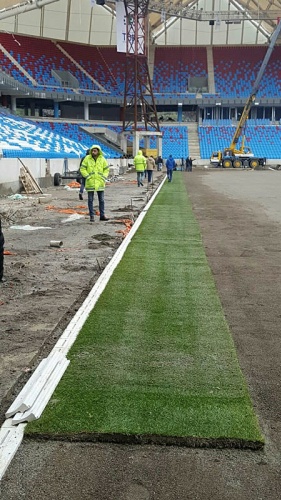 Saha zeminine serilecek çimen 3 bin metrekaresi İtalya'dan 28 tırla getirildi, 5 bin 300 metrekaresi ise 3 Kasım Perşembe günü gelecek.