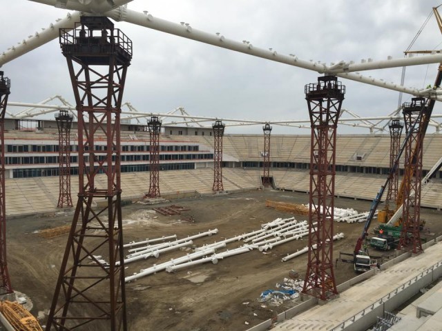 Onlarca araç ile Akyazı Stadına gelen Bakan Albayrak burada bir dizi incelemelerde bulunup çalışmalar hakkında bilgi aldı.