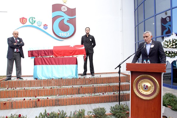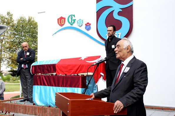 Vefat eden Ali Osman Ulusoy'un Türk bayrağı ve Trabzonspor'un renklerini taşıyan bayrağa sarılı naaşı, tören sonrası cenaze aracına konularak toprağa verilmek üzere Trabzon'un Of ilçesine götürüldü.