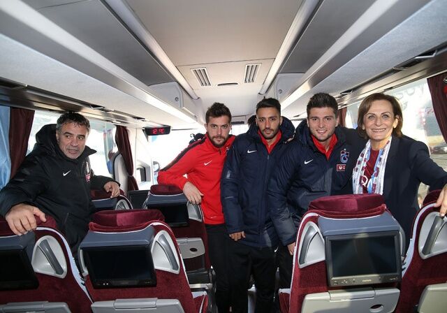 Bu yılın Nisan ayında piyasaya sunulan yeni Mercedes-Benz Travego, oyuncularımızın konforunu daha da artırmak için özel donanımlara sahip. Trabzonspor Kulübüne özel giydirme ile kaplanan yeni Travego koyu renkli camlarla, alüminyum alışımlı jantlarla ve iç tasarımda da Trabzonspor’a özel bordo-mavi renklerle donatıldı. Araç içinde hazır verilen uydu, modem ve koltuk arkası 10” monitör futbolculara seyahat boyunca erişebilirlik ve eğlence sunuyor.