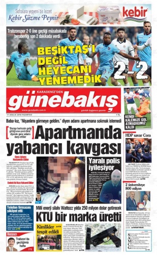 Karadeniz’den Günebakış Gazetesi, "Beşiktaş’ı değil heyecanı yenemedik." başlığıyla verilen haberde, Trabzonspor’un maçta, son dakikada beraberliği Beşiktaş’a verdiği yazıldı.