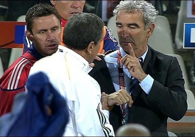 Fransa Milli Takımı Teknik Direktörü Raymond Domenech de, 2-1 kaybettiği Güney Afrika maçından sonra teknik direktör Carlos Alberto Parreira’nın elini sıkmamıştı.