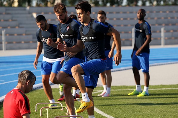 Teknik Direktör Ersun Yanal yönetiminde yapılan ve oldukça neşeli geçen antrenmanda Trabzonspor ısınmanın ardından topla taktik çalışma gerçekleştirdi.