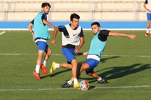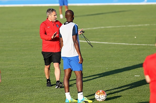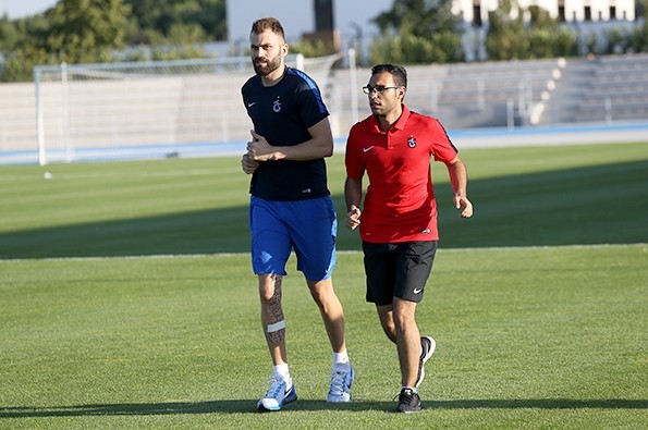 Antrenmanda Mustafa Yumlu fizyoterapist eşliğinde topla çalışma ve koşu yaptı.