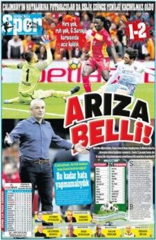 Sonnokta gazetesi, “Arıza belli!”, “Çalımbay’ın hatalarına futbolcular da eşlik edince yenilgi kaçınılmaz oldu” ifadelerine yer verdi.