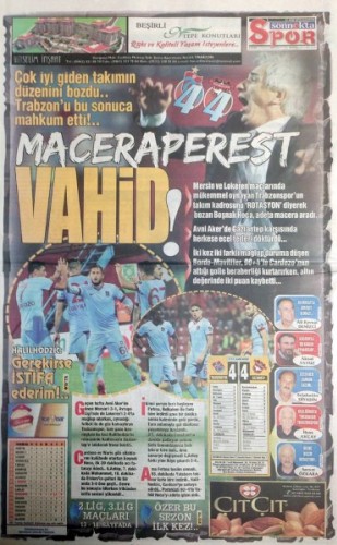 Mersin ve Lokeren maçlarında mükemmel oynayan Trabzonspor'un takım kadrosunu "Rotasyon" diyerek bozan Boşnak Hoca, adeta macera aradı. Avni Aker'de Gaziantep karşısında herkese ecel terleri döktürdü. İki kez, iki farklı mağlup duruma düşen Bordo Mavililer, 90+4'de Cardozo'nmun attığı golle beraberliği kurtarırken altın değerinde iki puan kaybetti.