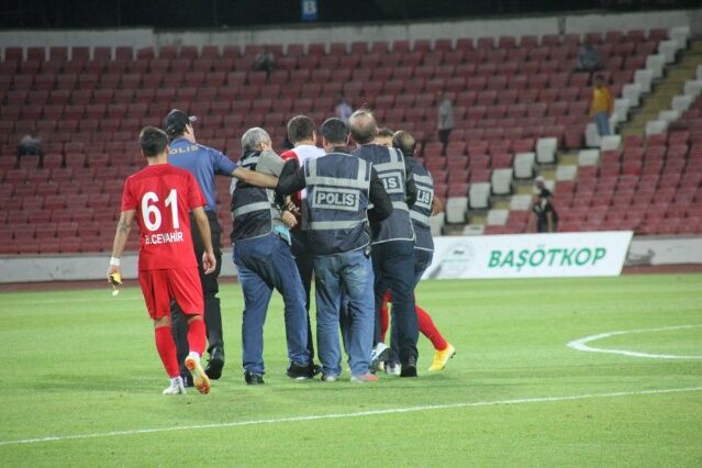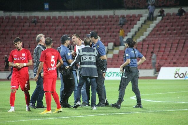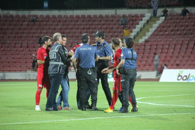 Müsabakanın 44. dakikasında sahaya giren Balıkesirspor Baltok formalı seyirci hakem Atilla Karaoğlan'a saldırdı.