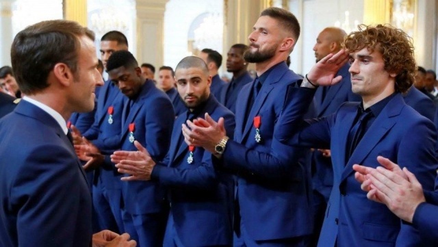 Griezmann, Macron'a sadece geçtiğimiz yıl Rusya'da düzenlnen Dünya Kupası finalinin ardından seremonide asker selamı vermişti.